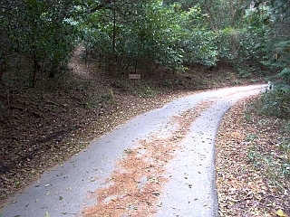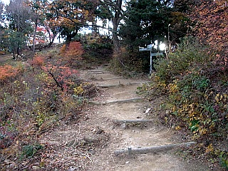 | ほぼ中間点となる鉄塔 | 名電長沢分岐 | 急な樹脂製の階段から舗装道へ |
