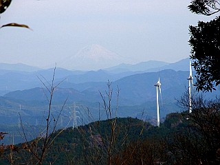 | 新東名高速道路が下を通る10基の風車が回る山 | ||