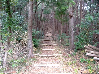 | この階段の最後の登り | 竜ヶ石山山頂 | 竜ヶ石山山頂から見た三岳山 |