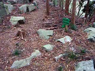 | 竜ヶ石山山頂から見た尉ヶ峰 | 三合山(山びこの丘)への分岐 | 三合山山頂 |