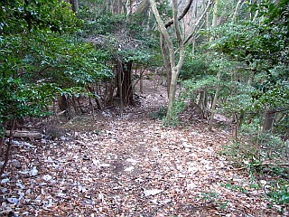| 毛利秀元陣所跡から見る養老山地 | 南宮山山頂への荒れ気味で不明瞭な道 | 展望の無い南宮山山頂 |