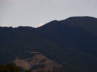| 山頂から見る富幕山、上の浅間山、本宮山 | 霧山山頂では観音山の肩に富士山が見える | いなさ湖と観音山 |