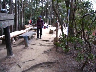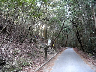 | 山行記 | ●この山は、17年前に登ったことがあるが、それ以来来たことがなく、久しぶりに訪れてみることにした。登山口の猿投神社は前回と比べると東海環状道の開通により格段に近くなり、豊田藤岡ICを下りると5分もかからず猿投神社の先にある登山者用の駐車場に着いた。 ●登山者用の駐車場は既に満杯状態で、かろうじて1台分だけ空いている駐車スペースに車を止めることができたが、その後も駐車場を探す車が次々と入ってきていた。駐車スペースはその先の道沿いにも沢山有り、歩いていくと登山口近くまで多くの車が駐車しているのを見た。 ●駐車場からは舗装道路をしばらく歩く。途中、夜の冷え込みでまだ氷の付いたトロミル水車やお倉岩などを見ながら、やや斜度のある舗装道路を歩いていくと、御門杉のある登山口が現れる。本来ならここから登っていくのだが、道路方向に、東の宮入口という案内があったので、そのまま舗装道路を進むことにした。しかし、これが車のための案内らしいことに気付き、地図にある途中で分岐する林道に入り、本来の登山道に戻った。登山道との交差点にも案内があり、「ハチに注意!」の立札もあった。 ●そこからは本来の登山道を歩く。樹林の中、平坦な広い道と土留の丸太の急な階段が交互に現れ、しだいに急登に変わる。休憩所や大岩展望台を過ぎると、登山道は西の宮を経由する自然探勝路と分岐する。そのまま東の宮へ向かう方へ進むと、すぐに舗装道路に飛び出す。道沿いには東海自然歩道の案内板が設置されていた。 ●舗装道を左に少し歩くと、東の宮の鳥居が立つ登山道入口がある。急な登山道を頑張ると、先ほどの西の宮から来る自然探勝路と合流し東の宮に到着する。東の宮の立派な社では、正月らしく多くの人が参拝をしていた。 ●東の宮から左手に下る鉄の階段を下りて猿投山山頂を目指す。樹林の中の道は概して緩やかで、ピークを避けて道が造られている。途中、木の間から雪を被った恵那山と中央アルプスを見ることができた。案内に従って快適な道をそのまま進むと、北面だけ開けた猿投山山頂に到着する。 ●猿投山山頂には丸太の長椅子やテーブルなどが整備されているが、寒いのでゆっくり座っている人は少なく、展望は、白山方面や御岳が見えるが、霞んでいてはっきりとは見ることができなかった。また、細長い山頂のど真ん中には一等三角点がどっしりと据えられていた。 ●寒いので山頂はそこそこにして下山にかかる。一旦東の宮まで戻り、そのすぐ下の西の宮を経由する自然探勝路に入る。自然探勝路はひたすら急な丸太の階段を下るが、その名のとおりいろいろな木に名札がかかっていた。途中、三本の大きな杉の木が聳える井戸杉や展望のいい御船岩を過ぎると、大唯命の墓が現れるが、そこから急な石段を下ったところが西の宮だ。 ●西の宮も立派な社だが、東の宮と比べ参拝者は少ない。西の宮からさらに急な石段を下ると舗装道と出会う。そこには東の宮と同じように、鳥居のある西の宮への登山の入口となっている。鳥居から舗装道路を左に歩くと、山側への取り付きがある。それをしばらく登ると先程の東の宮との分岐に出るので、後は来た道を戻るだけだ。 |
