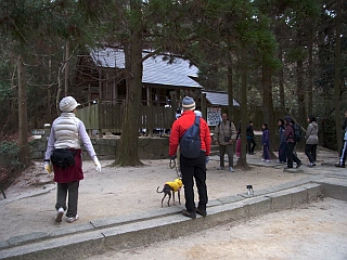 | 西の宮へ続く自然探勝路分岐 | 舗装道路から東の宮への入口 | 賑わう東の宮 |