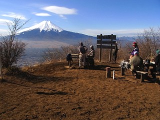| 山行記 | ●杓子山は、10年前の12月に来たとき、季節外れの大雪に逢って大変だった憶えがある。今回は、そのリベンジも兼ね、富士の展望を期待して再び訪れることにした。今回もその時のメンバーが一人いる。 ●新東名や御殿場市内から富士の絶景を見ながら登山口を目指す。心配した道路の凍結もなく、不動温泉を経て登山口の林道ゲートに到着することができた。ゲート脇の駐車スペースにはまだ一台の車も無かった。 ●早速支度をして歩き始める。最初その林道の延長を歩くが、傾斜が厳しく、登山道を登っているようだ。しかし、草木の間から富士山がよく見えるので気分がいい。結局林道は、蛇行しながら大権首峠まで続いた。 ●大権首峠のすぐ先にはハンググライダーのパント場があり、そこからは、大きな富士山の外、南アルプスや富士急ハイランドのある富士吉田の市街地などを展望することができた。 ●大権首峠からは、本格的な登山道が始まる。最初は急な尾根道をまっすぐ登るが、その後大きくジグザグを切りながら霜柱がまだ凍った急坂を登る。冬枯れの樹林の間から富士山や南アルプス、三ッ峠山、大菩薩嶺などを見ることができた。 ●山頂が近付くと、直線的な急坂となり、山頂直下ではロープの張られた滑りやすい急登になる。思ったよりも長い急坂をなんとか登りきったところが杓子山の山頂になる。 ●杓子山の山頂は北面以外に大展望が広がる。高座山の上に大きく裾野を伸ばす富士山を始め、南アルプス、山中湖、愛鷹連峰、箱根の山々、遠くは伊豆半島の山々などを一望することができる。 ●今回は鹿留山まで行ってみることにして、登山道を先へ進む。何度かアップダウンを繰り返しながら、鹿留山山頂と間違えるほどの立派なピークまで着くと、直下の十二曲方面への分岐を経て緩やかに下り、少し登り返したところが鹿留山山頂だ。 ●鹿留山山頂は、期待に反して地味な山頂で、三角点と登山道の標識に手書きされた山頂名があるだけで、樹林に囲まれ展望のない平凡なピークだ。 ●鹿留山はそこそこにして、杓子山の手前の風の来ない陽だまりで昼食休憩をする。杓子山に戻ると、往きとは違い暖かくなっていたので、展望を楽しんだ後下山を開始する。急な登山道は、当然下りもきつく、加えて霜が融けてきてぬかるんでいるので滑りやすいが、終始見える富士を励みに林道ゲートまで戻った。 |