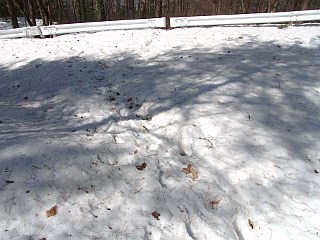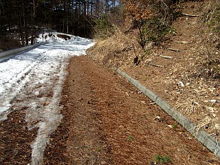 | 最初に出会う林道 | 林道から山道へ | 再び出会う林道は雪が深い |