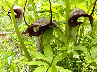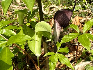 | シデコブシ | ウラシマソウ | ウラシマソウの隣に咲くスルガテンナンショウ |