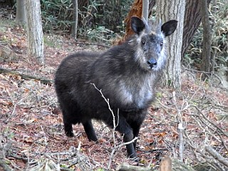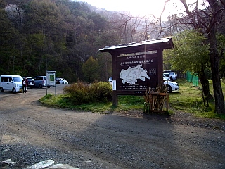 | 既に多くの車が停まる光城山駐車場 | 桜の散り果てた登山口 | 人慣れしたニホンカモシカ |