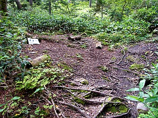 | 苗場山と分岐する西赤沢源頭 | 西赤沢源頭すぐにある坊主平 | 稜線の向こうに見える佐武流山の山頂部 |