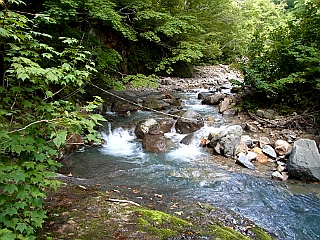 | 山行記 | ●三連休を利用して北アルプスの、まだ繋がっていない部分を歩こうと計画していたが、いろいろな事情があって2転してこの佐武流山へ行くことになった。佐武流山は200名山で、信州百名山にもなっているが、比較的マイナーな山で、この山を知っている人はおそらく少ないだろう。 ●北アルプスへ行くつもりで金曜日から休みをとっていたので、金曜日の昼前に豊川を出て、平日なので、割引の少ない高速道路を使わずに秋山郷の登山口を目指す。道の駅さかえで車中泊し、未明に登山口の中津川林道終点を目指した。1時間足らずで登山口に着くと、まだ暗いが、この山は行程が長いので、ヘッドライトを点けて近道の標識から登り始めた。 ●最初はひたすら林道歩きだと思っていたが、近道は山道で、それも結構登っていくので、林道終点から林道を歩いたほうがよかったかとも思いながら歩く。暗い中、群生しているサラシナショウマがヘッドライトの光に浮き出て見える。 ●山道が林道と出合うと、程なく中津川林道終点から来る林道との分岐に出る。そこからまだ続く林道を歩き、中津川渡渉点への下降点を探し渡渉点へと下る。 ●中津川はある程度の水量があり、そこを飛び石で渡るのだが、飛び石が水中に没しているものがあり、ロープが掛けられているとはいえなかなか難易度が高い。ロープを頼りにストックを仕舞って渡渉を開始したが、途中でバランスを崩し持っていたロープに振られて転倒、水没してしまった。ここは不安定なロープに頼らず、ストックを突きながら慎重に渡るべきであったと後で思ったが既に遅く、幸いザックの中の荷物は濡れずに済んだが、靴にまで水が入り、以降そのままでまだ長い行程を歩かざるを得なくなってしまった。 ●渡渉点からは、急な坂を登る。少し登ると一段落するが、再びそれを超えるような急斜面が延々と続く。何とかそれを登りきると、物思平と表示のある樹林の中の平坦地に出る。そこからも木の根が張って不安定で歩き難い道を進む。 ●これまで樹林帯の中の展望の無い道が続いたが、突然周囲の開けたワルサ峰に到着する。天気は晴れで、本来ならば信越の山々が見渡せるところだろうが、残念ながらこの日は山々がガスを纏い見ることはできなかった。 ●ワルサ峰からは、木の根や岩の足下の悪いアップダウンが続き、中にはロープに頼らなければ登降できないような悪場もある。幾つかのピークを越え、本格的な登りが始まると、その途中に西赤沢源頭と表示のある苗場山方面への分岐がある。その後もさらに登りは続き、一段落すると坊主平と表示のある平坦地に出る。 ●さらに登り、小ピークを越えると道はやや緩やかになり、じめじめとした泥道が現れるようになる。水の干上がった地塘を越えると稜線上に佐武流山の山頂部が見え始める。山頂へと続く徐々に登っていく稜線を最後のひと踏ん張りで登っていけば、ようやく佐武流山の山頂だ。 ●ここまで来ても、相変わらず周囲の山々はガスを纏い見渡すことができずがっかりだが、長かった道のりがあっただけに山頂についた満足感はひとしおだ。 ●思いの外山頂で時間を過ごしてしまったが、まだ長い帰りの道程が控えている。渡渉失敗で崩したペースは最後まで戻らず、帰りも大幅に時間を費やしてしまった。最後の林道は近道ではなく林道を歩いていくことにした。どちらを通っても時間的には変わらないという話もあったが、やはり林道歩きの方が時間がかかるようだ。しかし、林道ではニホンカモシカの親子に出合うことができたので、その選択は間違っていなかったようだ。 ●林道を歩き、登山を開始した中津川林道の近道登山口に到着したのは既に午後5時を回っていた。水没で濡れた衣服は靴の中を除きすっかり乾いていた。 |