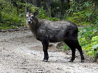 | ようやく辿り着いた佐武流山山頂 | 林道に現れたニホンカモシカ | 続いてニホンカモシカの子供も現れた |