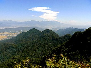 | 山行記 | ●三連休を利用して妻と信州の山を登りにやって来た。一日目は上田の独鈷山、以前からこの変わった名前が気になっていた山だ。連休なので、混雑を避けるため豊川を4時半に出て、登山口の中禅寺の駐車場に着いたのは9時前だった。車を停め支度をしているとお寺の人がやってきて、登山者は駐車場の隅に置くように指示されたので指示どおり車を一番隅に移動させ出発した。 ●舗装道を歩き、独鈷山登山口という表示のあるところから山側に続く道に入る。すぐにトラ柵が置かれた「災害通行止め」という看板が立ててあるところに出る。その先で舗装道が先の大雨による川の氾濫で崩れており、まだ崩れやすい川の縁から予想外の渡渉をすることになった。幸い舗装道が崩れていたのはそこだけで、後は何事もなかったような舗装道を歩いた。 ●虚空蔵堂を右手に見ると間もなく「頂上まであと100分」と書かれた広場に出る。舗装道はそこまでで、後は沢沿いの広い林道を歩くようになる。「頂上まであと90分」のところにある不動滝から道は左に折れ、「頂上まであと80分」の標識を過ぎた辺りから災害の爪痕が残る荒れた道へと変わっていく。 ●道は深くえぐられた枯れ涸れ沢の縁を歩くようになり、やがて石神様の祀られた広場に出る。ここから本格的な登山道となり、ジグザグの急登を、道端に生えるいろいろなキノコを楽しみながらひたすら登ることになる。「頂上まであと40分」の標識を過ぎると間もなく稜線に出る。 ●そこから続く緩やかだが痩せた稜線上の道は、木の根や岩で歩き難い。「頂上まであと30分」を通り過ぎると間もなく大岩の直下に出る。ロープの張られた大岩沿いの急な道を登りきり、「頂上まであと20分」の標識を見ると岩の上部に出るが、そこでは一気に展望が開け、青木三山や美ヶ原、浅間山、遠く北アルプス連峰を見渡すことができた。 ●以降痩せた稜線を進み、「頂上まであと10分」の標識を過ぎると、沢山湖方面からの道との合流点となる三叉路に出る。ここまで来れば独鈷山山頂まではあと一登りだ。 ●小さな祠と三角点のある独鈷山山頂からは、まさに360度の展望が広がる。青木三山はもちろん蓼科山や浅間山、四阿山、そして北アルプスは穂高連峰から白馬まで見渡すことができる。また、山頂では、秋の空を背景に赤とんぼが飛び交い、手を高く上げるとそこにとまる赤とんぼもあり面白かった。そうしてしばらく山頂を楽しんだ後、帰りは来た道を戻った。 |
