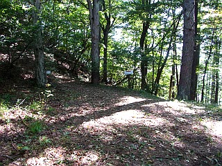 | 深くえぐられた涸れ沢の縁を歩く | 石神様の祀られた広場 | 急登を登って辿り着いた稜線 |