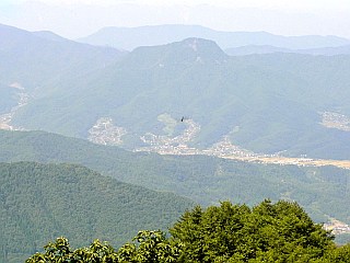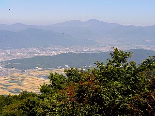 | 360度の展望が広がる独鈷山山頂 | 独鈷山山頂から見る上田市街と四阿山 | 独鈷山山頂から見る子檀嶺山 |