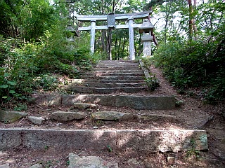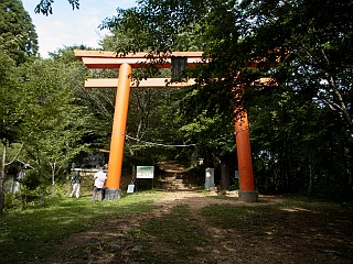 | 中間点となる石の鳥居は十四丁目 | 太郎神社直下の赤い鳥居は二十三丁目 | 山頂の一角にある太郎神社 |