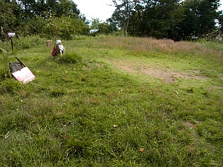 | 広い広場になっている太郎山山頂 | 太郎山山頂からは北アルプスの山並が見える | 裏登山道の山頂への近道との分岐 |