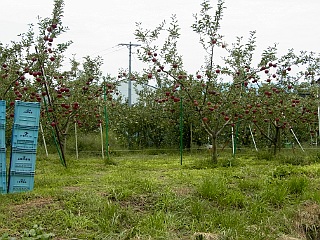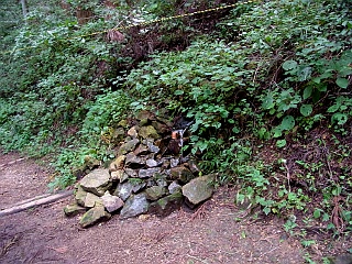 | 表登山道には2か所の水場がある | 裏登山道登山口 | 麓ではリンゴがいい色をしていた |