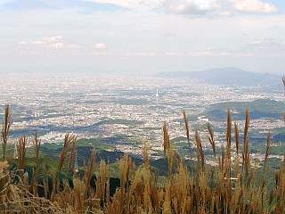| 山行記 | ●大阪というと東三河地方の者にとっては遠いイメージがあるが、行ってみるとそれ程ではない。この岩湧山も、距離的には東の金時山へ行くのとそれ程かわらない。カーナビに逆らって名阪国道、西名阪経由で登山口の岩湧の森を目指す。 ●藤井寺ICを降り、岩湧の森が近付くと大阪大都市圏の広い道から急にすれ違いもままならないような狭い道にかわる。道端にシュウカイドウが見られるようになると岩湧の森の駐車場が現れる。幾つか駐車場があるが、車の出し入れがしやすそうな第3駐車場に車を停めることにした。登山者の車はその後も次々とやって来るので、駐車場もあっという間に満杯状態で、駐車場を探す車でごった返していた。 ●駐車場から舗装道を歩いて登山口を探す。途中四季彩館で情報を入手するが、この日は、台風に伴う土砂崩れで数ある登山道のうち「きゅうざかの道」しか通れないということなので、岩湧寺の少し先のきゅうざかの道登山口から登ることにした。 ●きゅうざかの道は、その名のとおり、いきなり木の階段から始まり、その後も急な坂が続く。終始樹林帯の中だが、時折、富田林のPLの塔や、大阪湾などを見ることができた。 ●急坂を登りきると稜線に出るが、それが岩湧山東峰で、ここは既にダイヤモンドトレールの一角だ。樹林帯の中の東峰から一旦下ると、トイレがあり、そこからはカヤトの山肌が始まる。 ●ススキの生えるカヤトの緩やかな斜面を登ると三角点のある岩湧山山頂だ、山頂は狭くかろうじて記念写真が撮れるぐらいだが、さらに少し行った所に広場があり、登山者は皆そちらでくつろいでいる。 ●広場からは、隣の金剛山や葛城山、大阪の市街地、大阪湾、関西空港やその向こうには六甲山脈も見ることができた。朝から曇りがちだった天気も徐々に回復し、陽も差してきた。こちらも山頂広場でくつろいだ後、同じ道を戻ることにした。 |