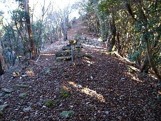 | 尾根コースの登山道入口 | 尾根に出ると案内がある | 浅里登山口への分岐 |