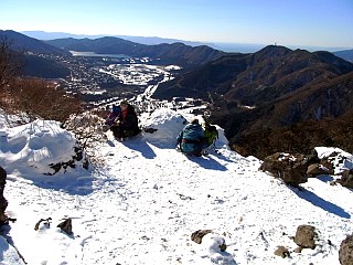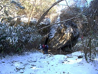| 山行記 | ●職場で山へ登ってみたいという人がいたので、それではと、満足度の高い金時山を選んだものの、事前の情報では雪がそこそこ残っているらしく、どうしようかと思ったが、難易度の低い山だし、大勢の人が登っているこの山なのでアイゼンさえあれば何とかなるのではと思い、予定どおり行くことにした。 ●往く道の新東名からも素晴らしい富士山が見られ天気も上々だ。しかし、御殿場ICで降り乙女峠へ向かう道は、峠に近付くにしたがい路面凍結箇所が多くなる。少し履きつぶし気味のスタッドレスタイヤで不安ではあったが、何とか登山口の公時神社の駐車場に着くことができた。雪で覆われた公時神社駐車場の残り1台分の駐車スペースに車を停め歩き始める。 ●駐車場のすぐ上にある公時神社にお参りをして、雪が覆う緩やかな登山道を行く。すぐに舗装道に出るが、舗装道は数センチの雪で覆われ、車の輪立ちが一本あるだけだった。舗装道を横断し、再び緩やかな斜面を登っていくと、大きく割れた大石が現れるがそれが「金時宿り石」だ。 ●金時宿り石からは斜度が徐々に増し、植林の中を登るようになる。雪も踏み固められており滑りやすいのでアイゼンを装着することにする。まだアイゼンを付けていない登山者もいたが、アイゼンを着けた方が格段に歩きやすく安定感もある。植林帯から明るく背の低い雑木帯に変わると箱根方面に展望が開けるようになり、やがて矢倉沢方面から登って来る道と合流する。 ●合流点からは、ひたすら頂上を目指すだけだが、日当たりが良いので雪が融けてぐちゃぐちゃのぬかるみになっているところもあり歩き辛い。傾斜は山頂が近付くにつれ急になり、ロープの張られた所もある。意外と長く感じるこの間も、茶店の建物が見えてくればあと僅かだ。 ●茶店の横を過ぎれば金時山の山頂。登って来る間見えなかった富士山の展望が一気に開け歓声が上がる。意外と暖かい山頂には既に多くの登山者が展望を楽しみながら休憩をしていた。時間は午前11時ということもあり、山頂の金時茶屋はまだ客がいなかったので、早速名物の味噌汁を注文する。直後に団体が入って来たりして急に混雑し始めたので、間一髪それ程待つことも無く暖かい味噌汁を頂くことができた。 ●山頂でしばらく金時茶屋や、富士山を始めとする展望を楽しんだ後下山を開始する。下山コースは乙女峠を回るコースや矢倉沢コースなどがあるが、何れも路面凍結した車道を歩かなければならないということを考え、安全をとって来た道を戻ることにした。帰りは、雪解けが更に進んでおり、ぬかるみに難渋しながらも無事に下りることができた。 ●帰路、乙女峠の富士見茶屋で食事をとった後、御殿場市温泉会館で冷えた体を温めた。帰り道も新東名などからずうっと富士山が見え続け、一日富士山三昧のいい休日を過ごすことができた。 |