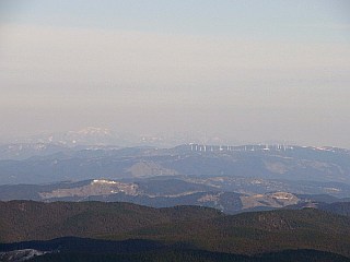 | 尼ヶ岳山頂から見る大洞山 | 尼ヶ岳山頂から見る倶留尊山、古光山 | 青山高原の風車群と鈴鹿の山々 |