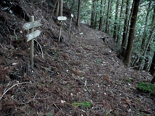 | 矢頭大杉と駐車場 | 手前が御峯コース登山口 | 不動滝コースとの合流点 |
