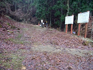 | 笹子谷コース入口 | 林道終点登山口 | 登山道は沢沿いの岩場から始まる |