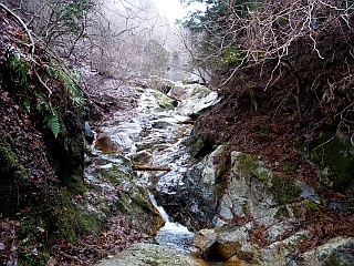 | 予想外の雪に遭遇した林道の崩壊が痛々しい笹子谷コースを歩く | ||