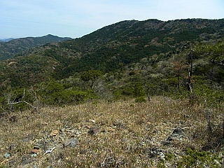 | 桜の時季も終り春の花の季節が始まった比丘尼城址と県境稜線 | ||