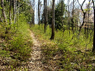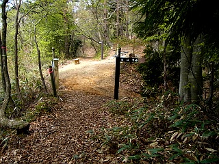 | 駐車地点と登山道入口 | 393.0m三角点 | 新緑が美しい快適な尾根道が続く |