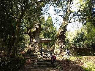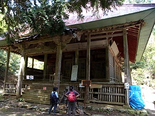 | 菅山寺へは新緑の美しいブナ林が続く | 菅原道真公お手植えのケヤキと山門 | 歴史を感じる菅山寺の本堂 |