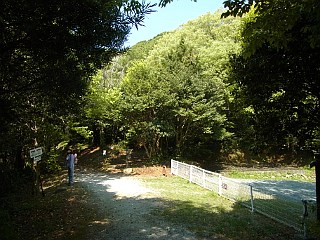 | 衣笠自然歩道小衣笠の道入口 | 未舗装林道終点は松尾岩コースの起点 | 展望台の建つ衣笠山山頂 |