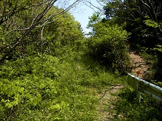 | 緑が美しい荒れた林道を横切る | 不動岳山頂 | 赤松山山頂 |