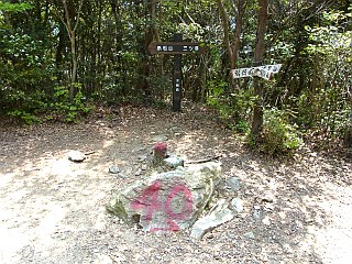 | 行程 | 衣笠自然歩道駐車場(9:34)・・・衣笠自然歩道入口(9:35)・・・未舗装林道終点(9:54)・・・松尾岩(9:58)・・・衣笠山(10:09-15)・・・桟敷岩(10:26)・・・桟敷岩新道・直登コース分岐(13:48)・・・東屋(10:44)・・・仁崎峠(10:56)・・・滝頭山(11:15-18)・・・中西山(11:24)・・・長興寺分岐(11:26)・・・荒れた林道(11:32)・・・三ツ俣(11:43)・・・迷子尾根ノ頭(11:48)・・・不動岳(11:57)・・・赤松山(12:06)・・・扇原(12:12)・・・クチナシの道入口(12:31)・・・衣笠自然歩道駐車場(12:40) | |