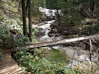 | 雲上橋を渡って不動岩方面へ | 林道出合 | アカヤシオが山腹を染める |