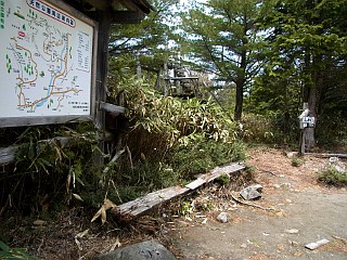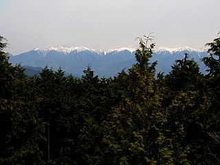 | 林道終点から山道に入る | 天然公園山頂 | 山頂展望台から見る中央アルプスの山々 |