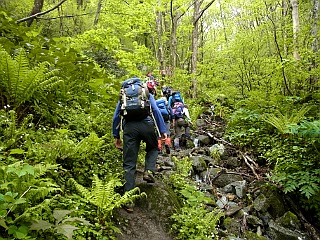 | アオネバ登山口 | 落合 | 新緑の谷筋を詰める |