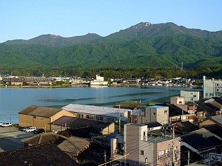 | 緑の建物の向こうには金北山と二の岳が | 二の岳分岐から見る二の岳 | 道路から見る小佐渡の山々と田園地帯 |