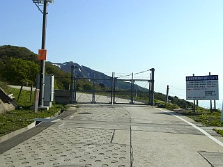 | 朝両津のホテルから見る金北山 | 白雲台の駐車場と妙見山 | ゲートを越えて防衛省管理道路へ |
