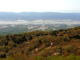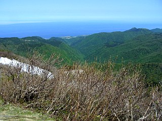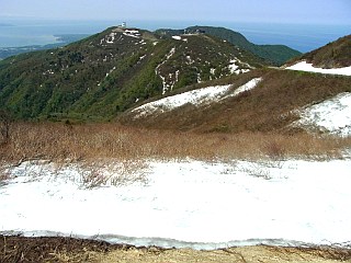 | 山行記 | ●前日ついに山頂部を見ることができなかった金北山も、朝から雲一つない天気で、ホテルからも良く見えていた。前日の情報では、金北山を南から目指すコースは残雪が多く道標が雪で隠れているところもあってわかりにくいということだったので、今回は、一番登りやすい白雲台から防衛省管理道路を通って山頂を目指すことにする。 ●ホテルで朝食を済ませた後、登山口の白雲台を目指す。大佐渡スカイラインに繋がる広くコンクリートで滑り止め舗装された道を防衛省の施設を見ながら車を走らせる。白雲台の駐車場に着いた時にはまだ駐車している車も無く、観光センターもまだ営業時間前だった。駐車場からは、妙高山や北アルプスなども遠く望むことができた。 ●朝から雲一つ無い天気で、白いレーダー施設の建つ妙見山の山腹にあるフェンスを越えて防衛省管理道路に入る。さすがに国が管理しているだけあって、道も広く整備が行き届いている。逆に、これでは自然度も低いのではないかと心配になるが、沿道にシラネアオイの群落が現れ、その心配が杞憂であったことに気付く。 ●以降、エンレイソウやカタクリ、ミヤマカタバミ、キクザキイチゲ、エゾエンゴサクなどが次々現れ否が応にもテンションが上がる。また、広い道路からは佐渡ヶ島の小佐渡の山並みと中心部の田園地帯、海の向こうには雪を被った東北や上信越の山並みがずうっと見えている。 ●よく整備された広い道には似つかわしくない、豊富な自然の残る道は、緩やかに上りながら、既に見えている金北山山頂へと続く。やがて妙見山への分岐を経ると、すぐに道は二の岳へ登る道と二の岳を左へ巻きながら下る道に分かれる。地図を確認すればよかったのだが、輪立ちの明瞭な二の岳へ登る道を選んでしまった。 ●二の岳へ登っていくとゲートが現れ、おかしいなとは思いながらそれの隙間を抜けて中へ入っていってしまった。メンバーが全員ゲートを潜った頃、突然屋外スピーカーで、すぐ退去するよう指示された。そこで地図を確認すると、道は先程の下る道であることがわかったので先程の分岐まで戻り、二の岳を巻きながら下る道を進むことにした。 ●しばらく下ると、道はいよいよ金北山へと登り始める。傾斜はしだいに急になるが、道々に咲く花々や始まったばかりの新緑に励まされながらひたすら登る。山頂の一角にある広場まで着くと、後はコンクリートの階段を登り詰めれば神社の建つ金北山山頂だ。三角点を探したが見つからなかった。 ●佐渡で一番高い場所である金北山山頂からの眺めは素晴らしく、建物の周りから360度の展望が広がる。佐渡ヶ島全島が一望できるほか、東北、上信越の山々や外海府、内海府などの碧く広い日本海を見ることができた。帰りは来た道を戻るが、当初思っていた単なる車道歩きの物足りない山行ではなく、天気にも恵まれ、花や展望を十分に満喫したいい山行となった。 |