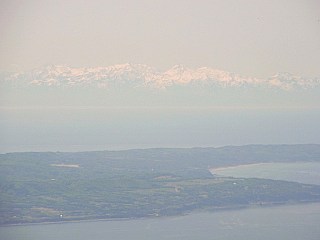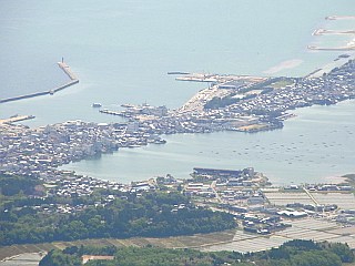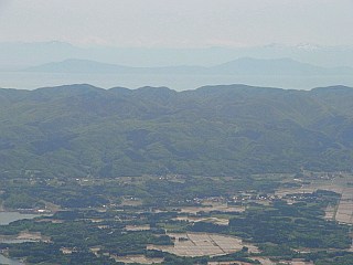 | 山頂から見る北アルプス | 山頂から見る角田山と弥彦山 | 山頂から見る両津の市街 |