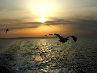 | カモメがついてくる | ときわ丸から見る佐渡ヶ島と夕日 | エンレイソウ |