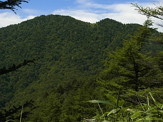 | 尾根から見る大川入山の山頂部 | 山頂まで2km地点 | 恩田大川入山分岐 |