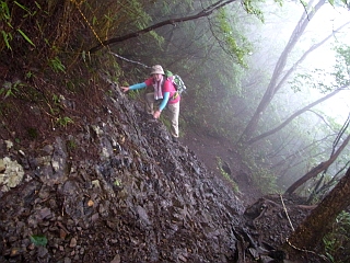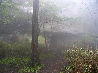 | ガスの中 本来なら艫岩からの展望が自慢の200名山を登り直す | ||