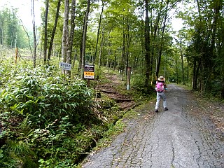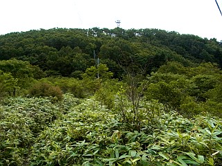 | 山行記 | ●天候不順が続く中、この日もあまり天気は良さそうではないので、阿智セブンサミットの中でも、雨が降っても大丈夫なように、林道が山頂まで続くこの蛇峠山を選んだ。 ●登山口は、治部坂高原。車は、国土交通省の「駐車帯」という看板の立つ舗装された駐車場に停める。この時間ではまだ観光客はいないので、広い駐車場の何処へ車を停めようか迷う程空いていた。 ●早速案内看板に従って駐車場の左手から続く舗装道を登る。少し行くと、馬ノ背方面と別荘地方面との分岐に出る。ここでいう馬ノ背方面は、車で行く場合で林道経由になるので、ここは別荘地方面へ進む。 ●ママコナやツリフネソウ、ヤマトウバナなどが咲く別荘地の中の舗装道を登っていくと、阿智セブンサミットの登山道入口の案内があるので、それに従って山道に入る。 ●木々が疎らに生える明るい登山道にはキンミズヒキやトリカブト、ヤマキツネノボタンなどが咲いている。行く手が明るくなってくると、舗装された林道に飛び出す。 ●その林道を少し歩くと、再び山道への入口があるのでそちらへ進む。傾斜は急になり、一登りすると周囲の開けた小ピークに出るが、そこが馬ノ背と呼ばれるところだ。 ●馬ノ背は、よく草の刈られた広場で、その反対に下りたところで林道はフェンスで止められており、駐車場になっている。数台のスペースがある駐車場はほぼ満杯状態で、ここで散策する人や、ここから蛇峠山へ登る人など様々だ。 ●ここから山頂へは、そのまま林道を行くという方法もあるが、薄日が差して暑くなってきたこともあり、往きは車止フェンスの左から続く樹林帯の中の山道を行くことにした。山道は、何度も舗装道を横切りながら徐々に高度を上げていく。 ●三度目に林道と出合う所からは、舗装道を歩くことになる。幾つもの通信施設の鉄塔が立つ山頂付近は、道標も無く、どの道も施設へ続くしっかり舗装された道なので余計にわかりにくい。 ●間違っていれば施設の入口のフェンスで行き止まりになるので、引き返したりしながら進む。林道沿いには、コオニユリやマツムシソウ、ツリガネニンジン、ホツツジなどが咲き賑やかだ。 ●やがて、山頂への分岐となるレーダー雨量計に到着する。山頂へはそこから一旦下り登り返すのだが、露で濡れた背丈ほどもあるササが覆いかぶさり、ズボンがしっかりと濡れてしまった。 ●登り返して坂が緩くなると、ササの間に山頂の展望台が見えてくる。展望台の向こうには、三角点と阿智セブンサミットの山頂看板が見えている。 ●まずは展望台に登ってみる。霞んで遠くの山々が見渡せないのに加え、周囲の木々が伸びすぎてあまり良好な展望は得られないが、木の間から茶臼山や三ツ瀬明神山などを確認することができた。 ●天気は曇りに変わったので、帰りは林道経由で帰ることにした。林道にはこれまで見られた花に加え、ウメバチソウやヤマジノホトトギス、ジンバイソウなどを見ることができたが、当然のことながら距離は長く、しっかりと時間がかかってしまった。 |