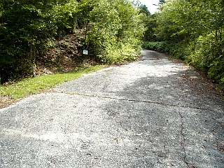 | 最初の林道出合 | 馬ノ背 | 馬ノ背からかすかに見える山頂部と駐車場 |