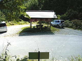 | 高鳥屋山山頂から見る飯田山本IC方面 | 高鳥屋山山頂の頂上小屋 | 東屋のある鳩打峠の駐車地点 |