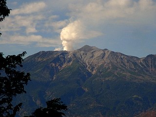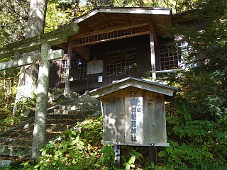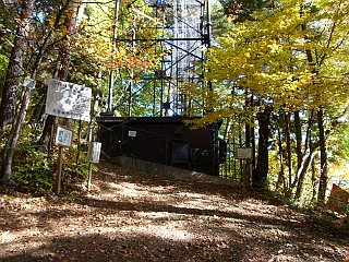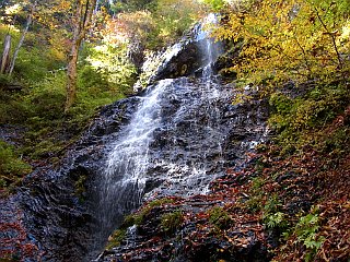 | 山行記 | ●御岳噴火から約一カ月、観光客が激減しているということなので、それでは行かなければと、木曽福島の里山を絡めて開田高原の新そばを食べに行くことにした。山は木曽福島の街から登る、かつて福島城の建っていた城山で、またの名を児野山という。 ●登山コースは「城山史跡の森」として町により整備されており、登山口もいろいろあるが、今回は福島支所に車を置かせてもらい、福島小学校横の城山史跡コースから登ることにした。 ●福島支所から青空と紅葉が眩しい山肌を見ながら福島小学校へ向かう。小学校の左脇からコンクリートの細い道が続き小学校の裏手からは左方向に所々枕木のような木の階段が設置された山道が続く。あと少しで見頃を迎える紅葉は、陽を透かして美しい。 ●途中行き止まりの舗装道路を右に見ながら更に進むと、山村稲荷神社の建物が現れる。山村神社の左手から神社の上に出ると広い道に出る。 ●案内地図ではここから左方向に進むように読めるので、最初は左方向へ進んでみるが道は無くなってしまった。それではと逆の方向へ進んてみると、紅葉ヶ丘方面と興善寺方面との分岐の案内が現れたので、これに従って紅葉ヶ丘方面へ進む。 ●紅葉ヶ丘周辺はその名のとおり紅葉真っ盛り、ここで、権現滝コースと分かれて福島城址を目指す。紅葉も素晴らしいが、木曽五木を始めとした巨木もこの山の見所のひとつだ。 ●広い遊歩道を進むと、福島城址への分岐に出るので、それも見ていくことにして案内に従って進む。福島城址は二の丸城跡と三の丸城跡、本丸城跡があり、それぞれ城跡の広場を見ながら往時を偲ぶことができる。 ●福島城址から本道に戻り、その先の分岐から権現滝コースを分け、演習林コースを進む。このコースは尾根に沿って高度を稼ぎ、急登が落ち着く頃、左から来る巨木コースと合流する。 ●それ以外でも巨木が目立つこの山の中でもコースの名のとおり巨木が多く、木の名札も付けられている。足下にはツルリンドウ、ツルアリドオシの実や、紅葉の落ち葉が美しい。樹間には、乗鞍岳も見ることができた。 ●やがて、児野山山頂三角点への分岐が現れるのでそちらへ進むと、程なく児野山山頂に到着する。しかし、ここは三角点があるだけで展望は無く、その先に展望所があると言うのでそこまで行ってみることにした。 ●展望所は通信施設と思われる建物の裏手にあり、前週噴火した御岳が見え、いまだに噴煙を上げる様子が生々しく、奇しくも噴火災害の起きたのと同じぐらいの時刻、思わず手を合わせる。 ●山頂に戻り少し休憩した後、権現滝を目指す。道は少し緩やかな道を歩いた後、谷に向かってジグザグに急降下を開始する。もえるような紅葉と巨木を見ながら急坂を下り、沢を何度か渡ると紅葉台と権現滝との分岐に出るが、そのすぐ先が権現滝だ。 ●権現滝はなかなか見事な滝で、その迫力と周囲の紅葉との対比は実に素晴らしかった。権現滝から、沢沿いの落ち葉で滑りやすい道を下ると、権現滝コースの登山口に出る。権現滝コースの登山口にはそのすぐ上に建つ民家のものと思われるバイクと自転車が置いてあった。 ●登山口からは車道を歩いて観光客が足湯に浸かる行人橋を渡り、街並みを歩く。途中七笑酒造があったので、搾りたての酒を購入して、車を置いた福島支所に戻った。 ●車に戻ると、開田高原へ向かい、新そばを食べて、二本木温泉で汗を流して帰路に着いたが、開田高原は、新そばの時期にもかかわらず観光客は少ないようだった。 |
