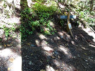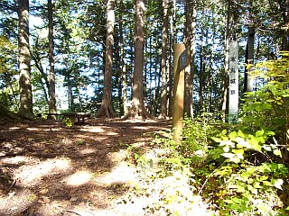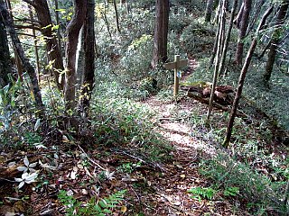| 樹間に見える乗鞍岳 | 児野山山頂三角点への分岐 | 三角点のある児野山山頂 |