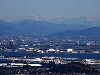 | 衣笠山山頂から見る蔵王山と富士山 | 衣笠山山頂から見る南アルプス | 桟敷岩から見る渥美半島西部の山々 |